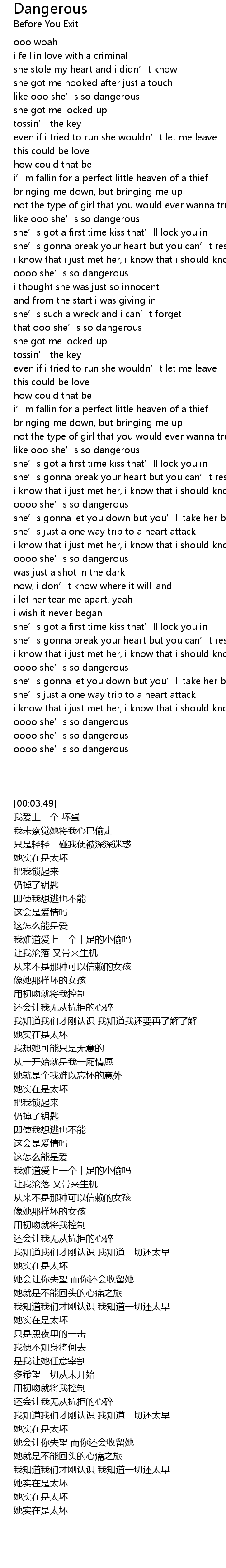 | [03:01.40] | oooo she' s so dangerous |
