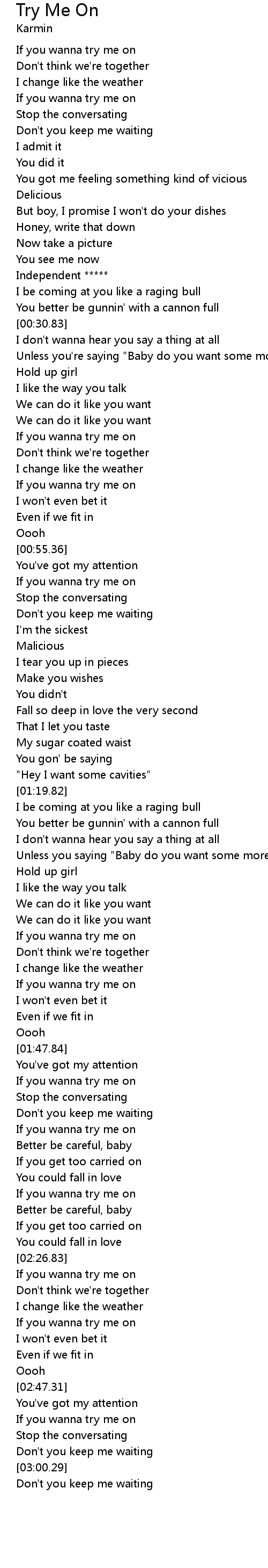 | [02:01.01] | If you wanna try me on |