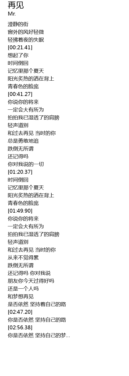 | [02:58.45] | 你是否依然 坚持自己的梦… |