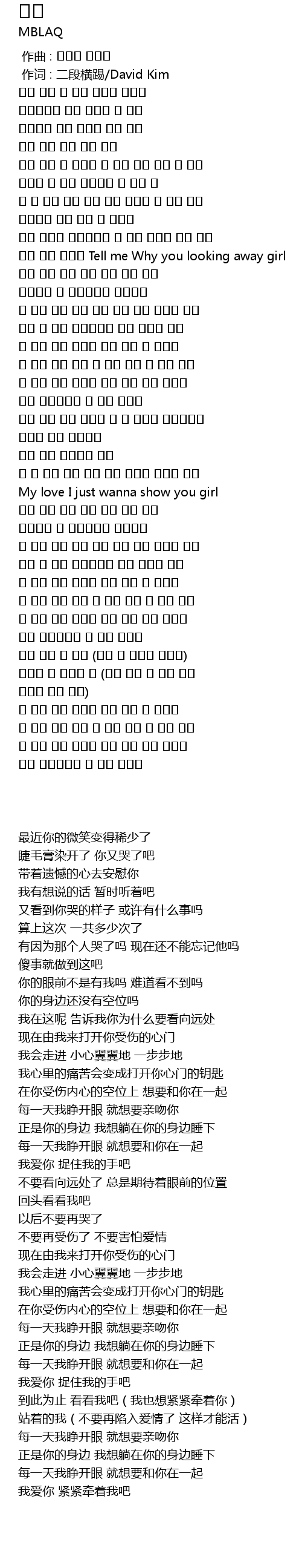 作词 : 二段横踢/David Kim |