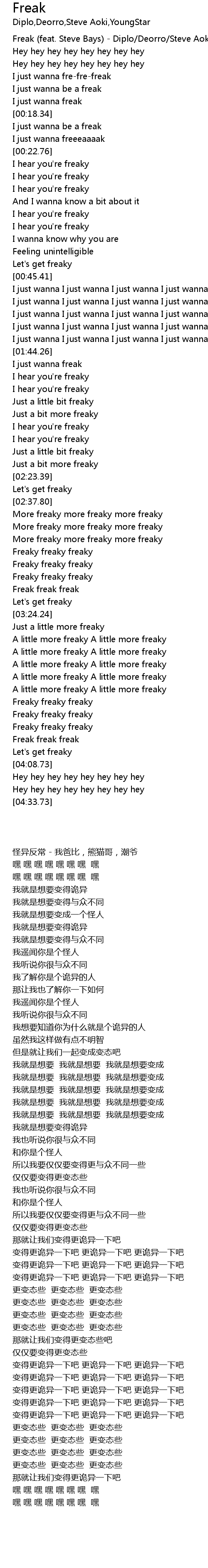| [00:00.63] | Freak (feat. Steve Bays) - Diplo/Deorro/Steve Aoki |
