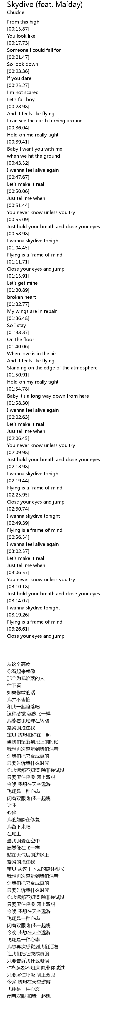 | [00:59.66] | I wanna skydive tonight |