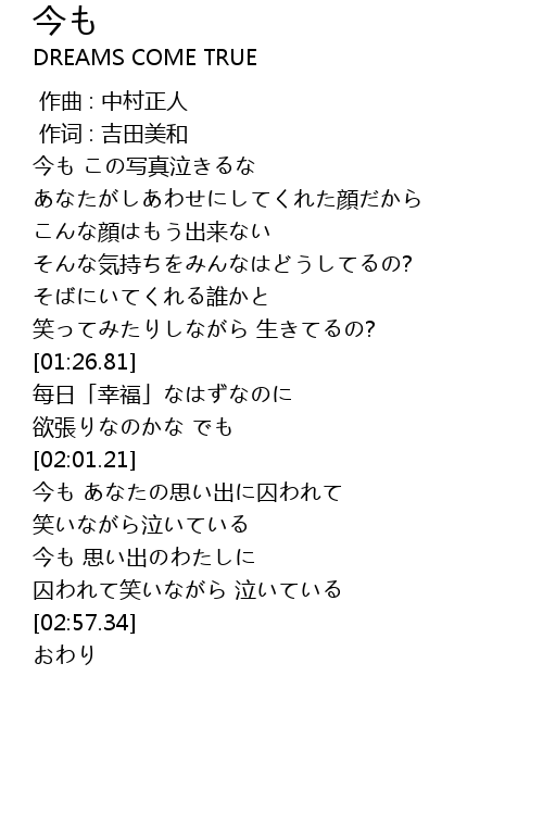 | [02:01.53] | 今も あなたの思い出に囚われて |