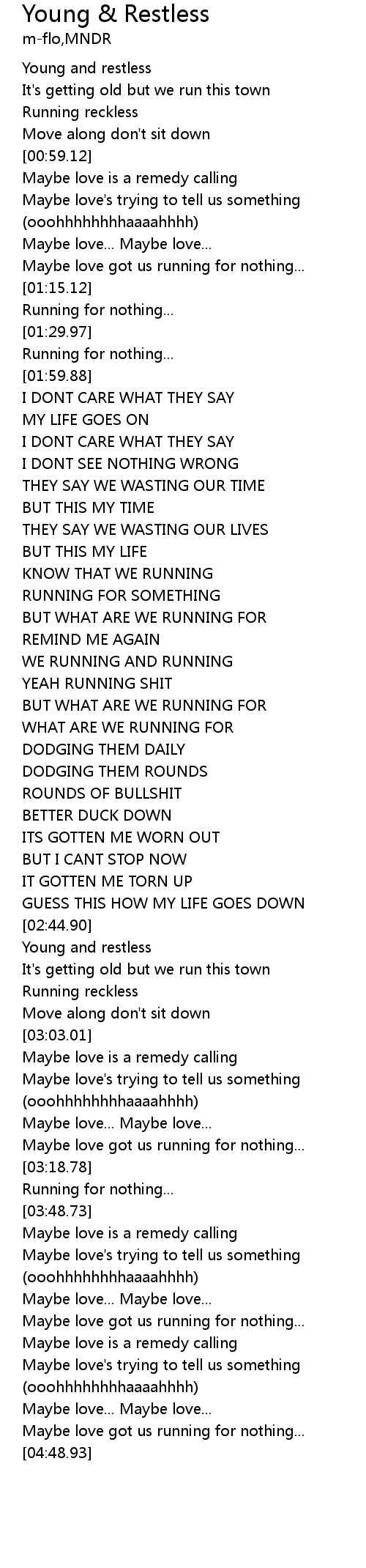 | [00:45.85] | Young and restless |