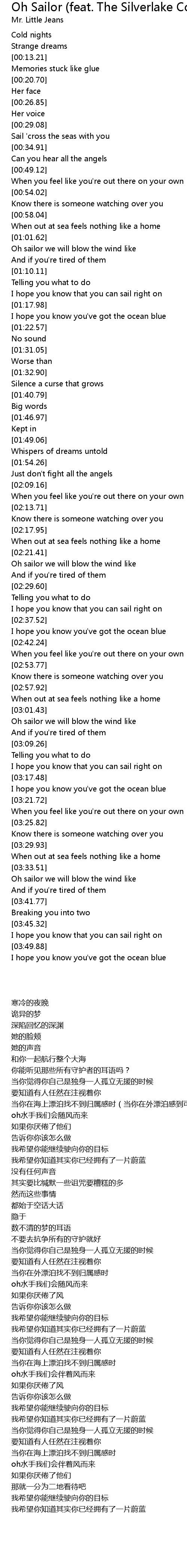 Oh Sailor (feat. The Silverlake Conservatory of Music Youth Chorale) Lyrics