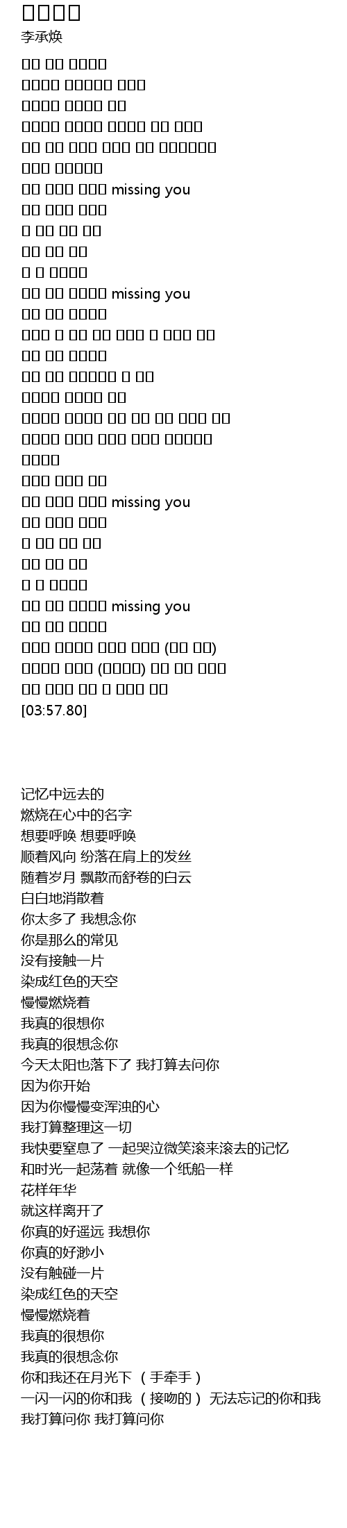 | [03:17.78] | 네가 너무 그리워서 missing you |