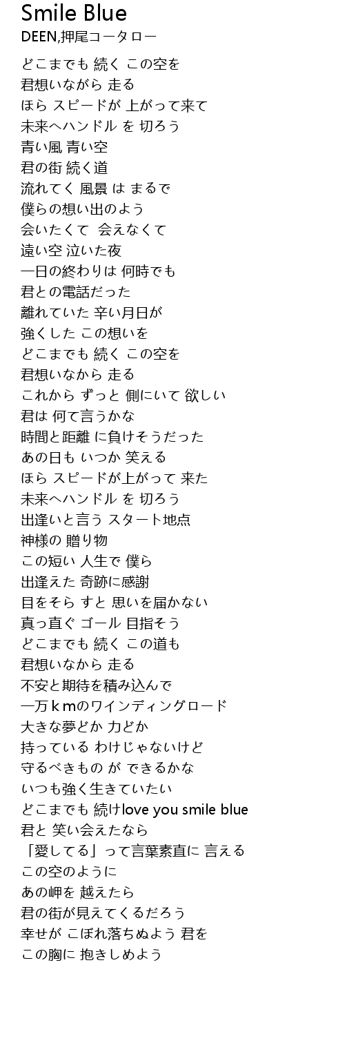 | [04:00.08] | どこまでも 続けlove you smile blue |