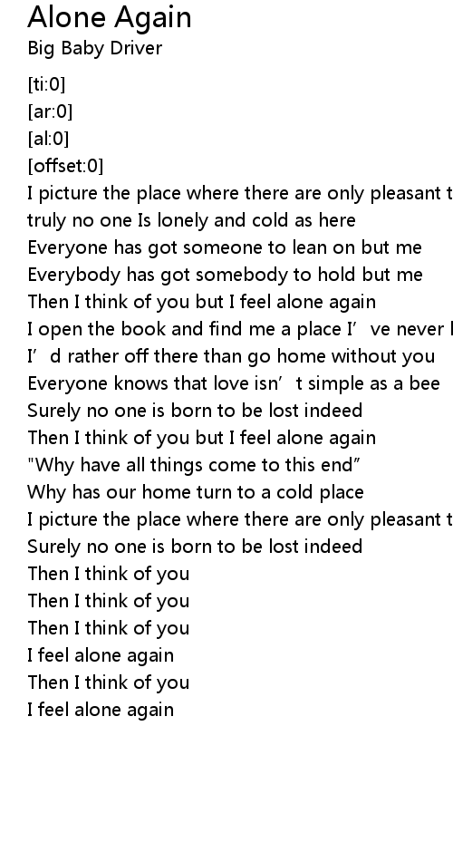 | [00:41.12] | Everybody has got somebody to hold but me |