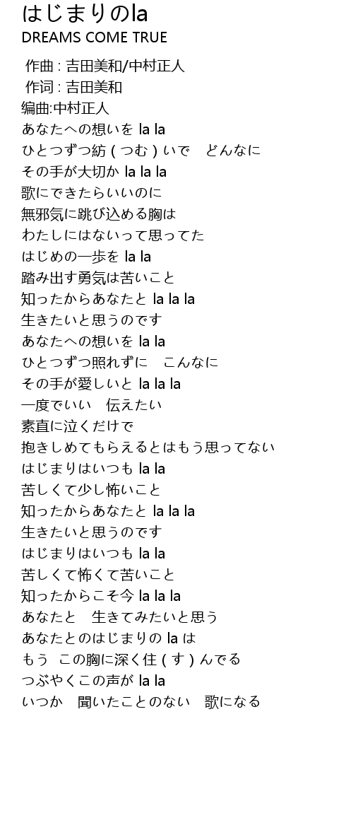 | [00:00.000] | 作曲 : 吉田美和/中村正人 |