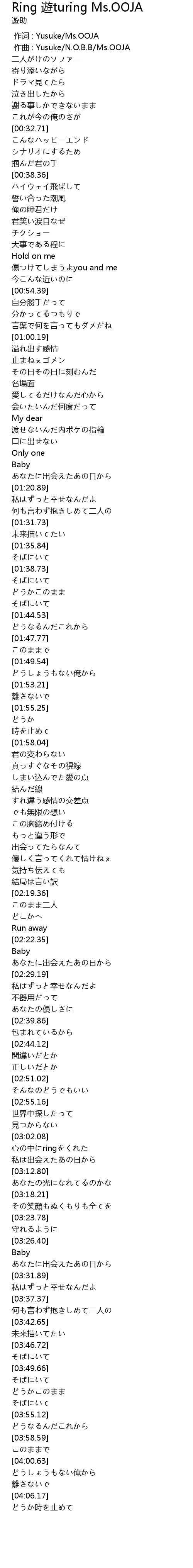 | [00:01.000] | zuò qǔ : Yusuke N. O. B. B Ms. OOJA |