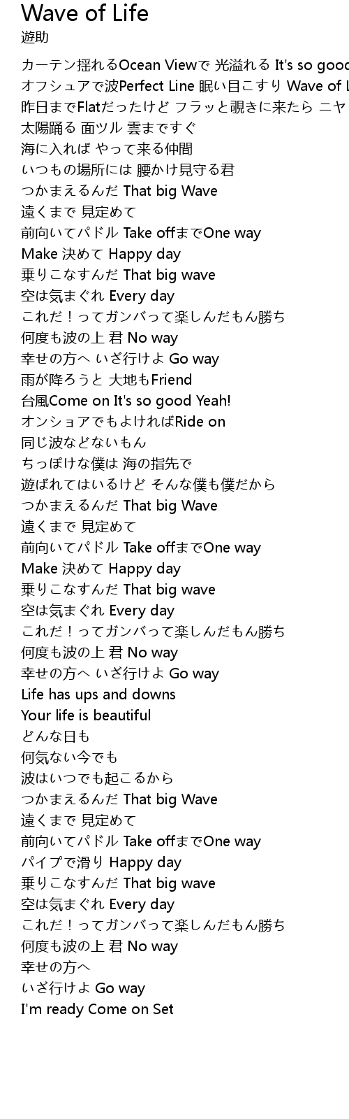| オフシュアで波Perfect Line 眠い目こすり Wave of Life | |