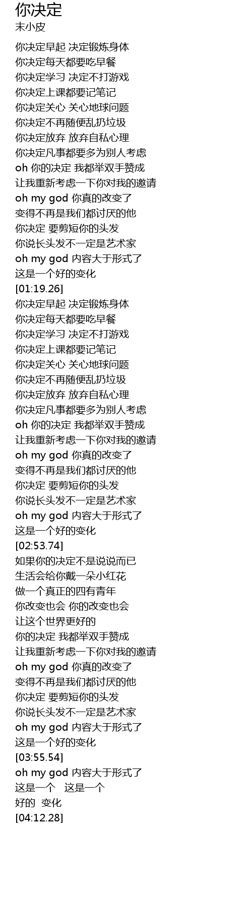 | [01:39.47] | 你决定早起 决定锻炼身体 |