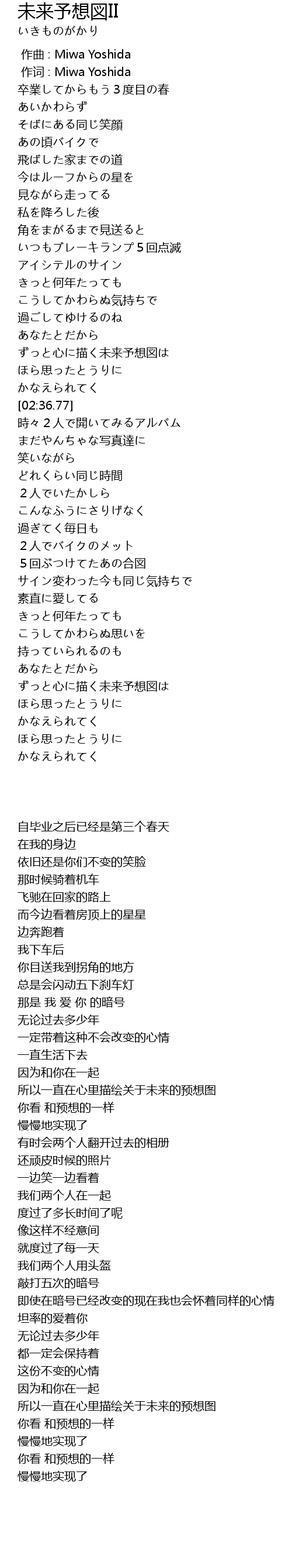| [00:01.00] | 作词 : Miwa Yoshida |