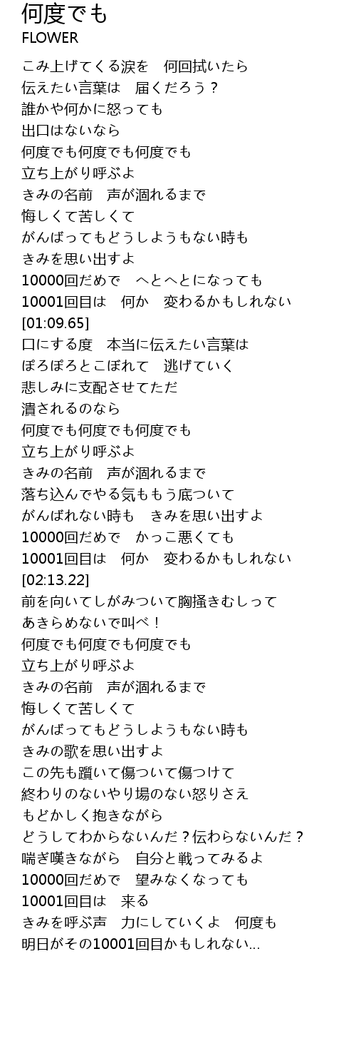 | [01:59.71] | 10001回目は 何か 変わるかもしれない |