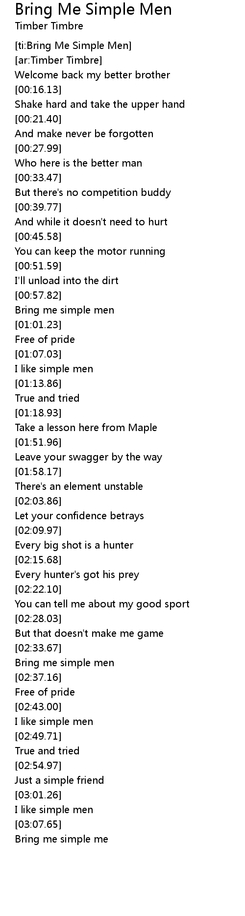 [ti:Bring Me Simple Men] |