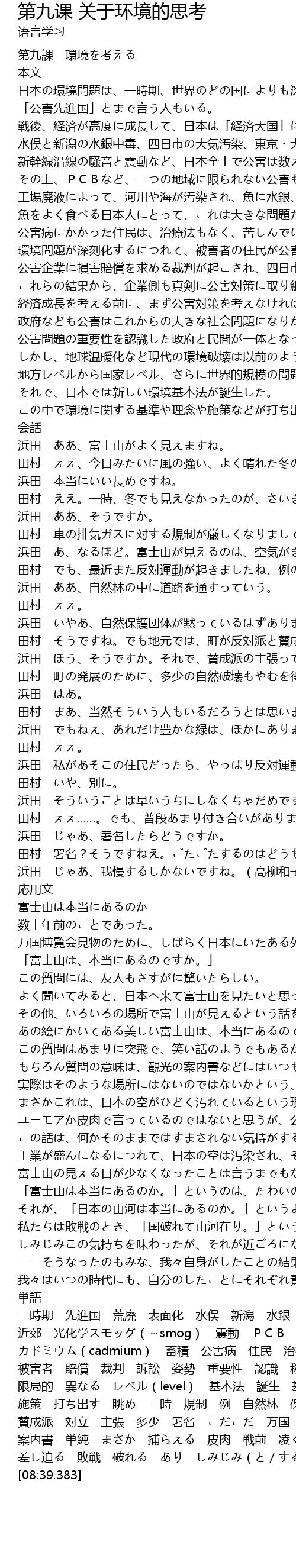 | [00:02.625] | 第九課 環境を考える |