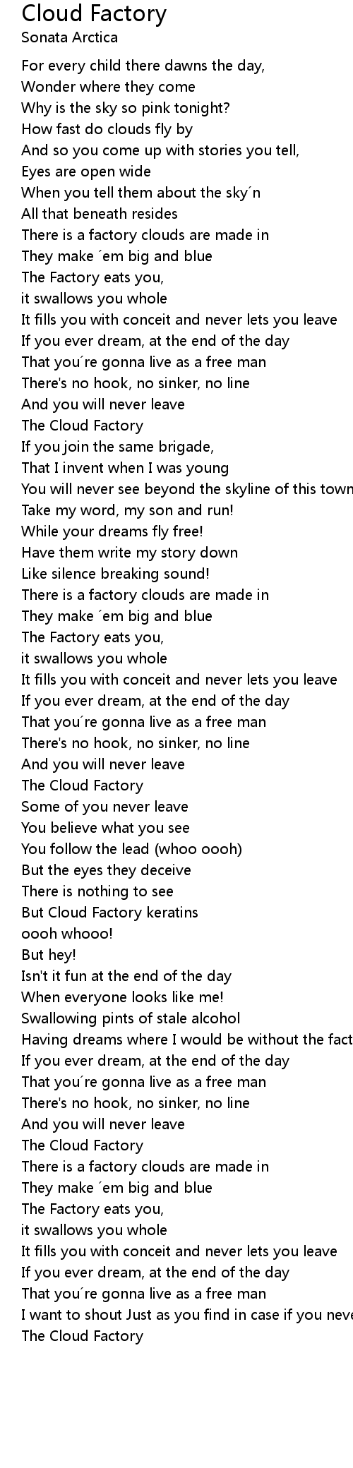 | Song | Cloud Factory |