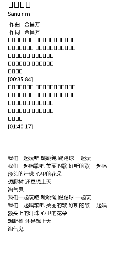 우리같이놀아요 뜀을뛰며공을차며놀아요 |