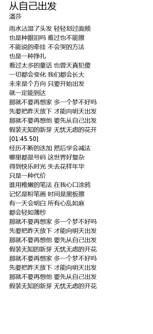| [01:25.33] | 那就不要再想他 要先从自己出发 |