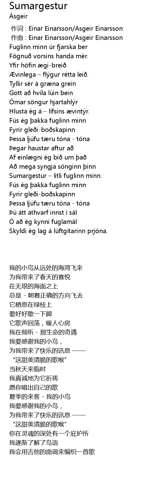 | [00:01.000] | zuò qǔ : Einar Einarsson Asgeir Einarsson |