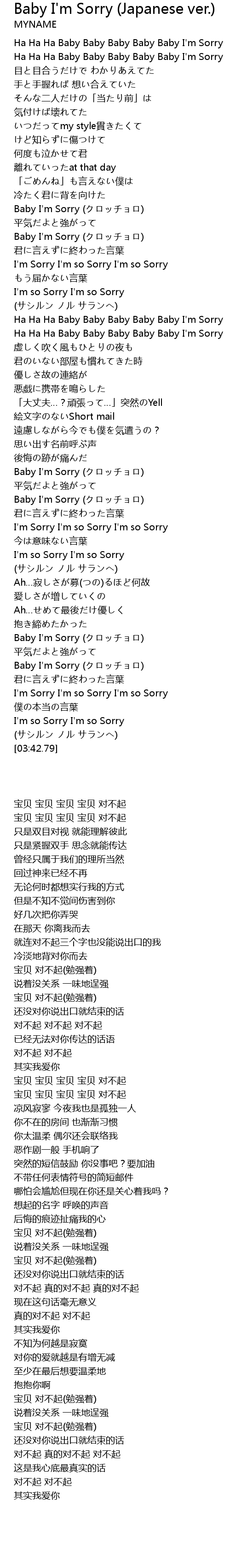 | [00:16.62] | Ha Ha Ha Baby Baby Baby Baby Baby I'm Sorry |