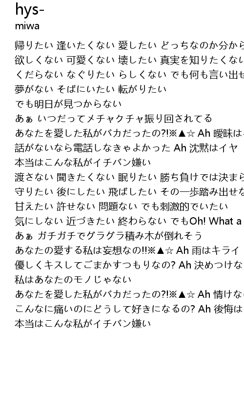 | 帰りたい 逢いたくない 愛したい どっちなのか分からない | |
