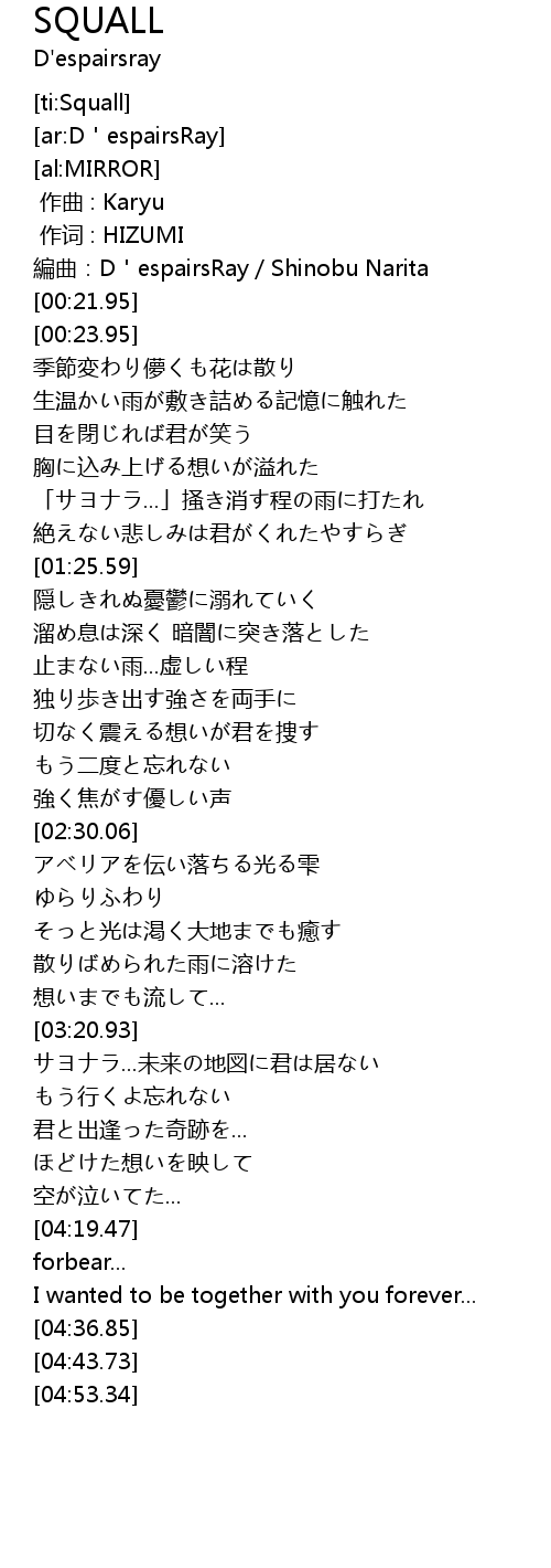 | [00:19.95] | bian qu: D espairsRay Shinobu Narita |