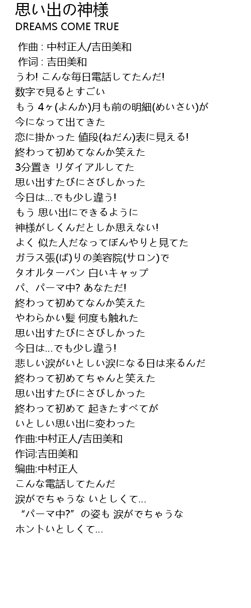 | [02:37.090] | 作曲:中村正人/吉田美和 |