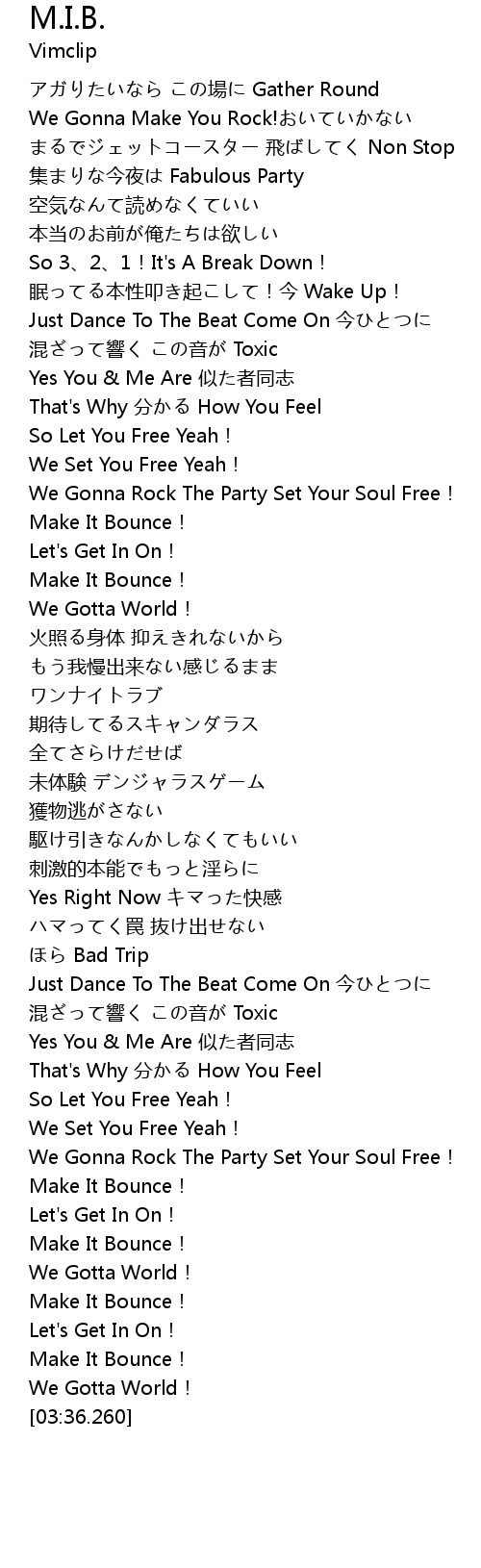| [00:43.620] | Just Dance To The Beat Come On 今ひとつに |