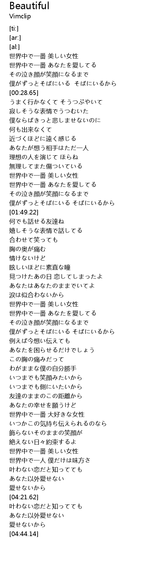 | [03:53.87] | 世界中で一番 美しい女性 |