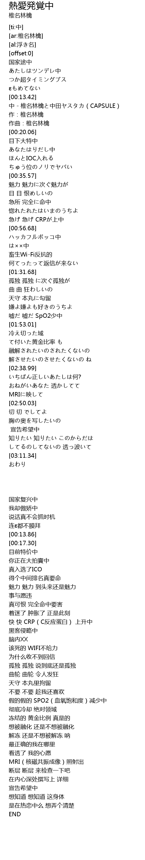 | [00:13.86] | zhong chui ming lin qin zhong tian CAPSULE |