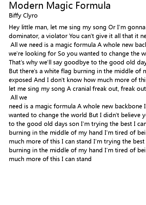 Hey little man, let me sing my song Or I'm gonna freak out, freak out Become a dominator, a violator You can't give it all that it needs You can't give it all that it needs [x2] All we need is a magic formula A whole new backbone Is what we're looking for So you wanted to change the world But I didn't believe you That's why we'll say goodbye to the good old days son I'm trying the best I can But there's a white flag burning in the middle of my hand I'm tired of being exposed And I don't know how much more of this I can stand Hey heaven's whore, let me sing my song A cranial freak out, freak out, freak out, freak out You can't give it all that it needs You can't give it all that it needs [x2] All we need is a magic formula A whole new backbone Is what we're looking for So you wanted to change the world But I didn't believe you That's why we'll say goodbye to the good old days son I'm trying the best I can But there's a white flag burning in the middle of my hand I'm tired of being exposed And I don't know how much more of this I can stand I'm trying the best I can But there's a white flag burning in the middle of my hand I'm tired of being exposed And I don't know how much more of this I can stand