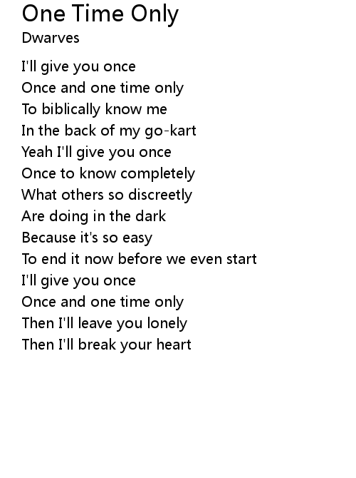 | Once and one time only | |