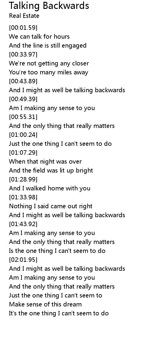 And I might as well be talking backwards |