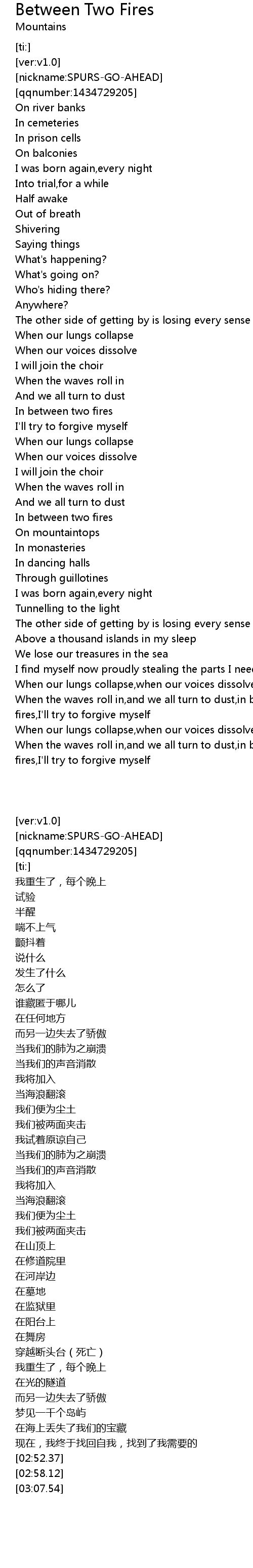 When the waves roll in,and we all turn to dust,in between to fires,I'll try to forgive myself |