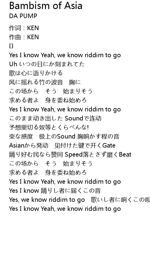 | Yes, we know riddim to go gē zhě xiǎng bei | |