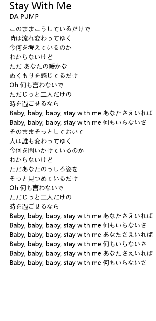 | Baby, baby, baby, stay with me 何もいらないさ |