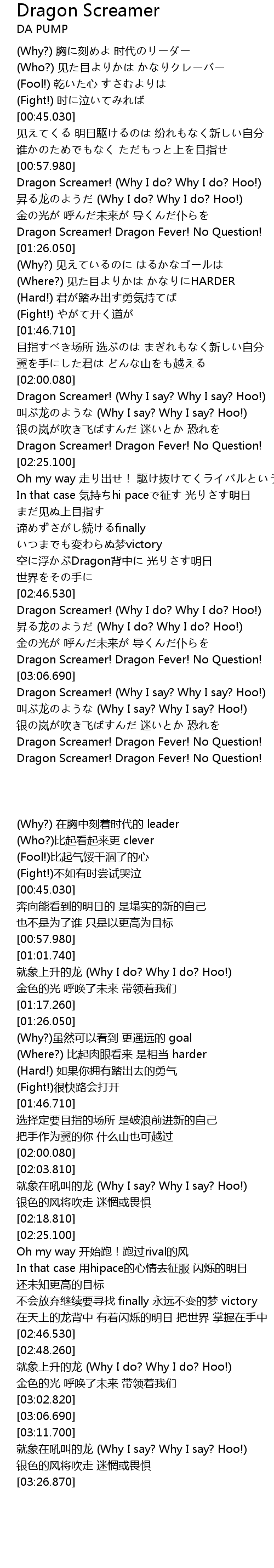 | [03:11.700] | Dragon Screamer! (Why I say? Why I say? Hoo!) |