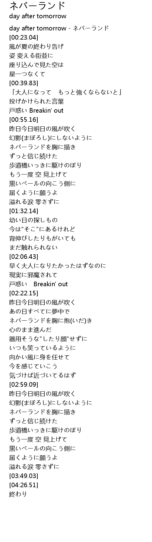 | [00:00.00] | day after tomorrow - ネバーランド |