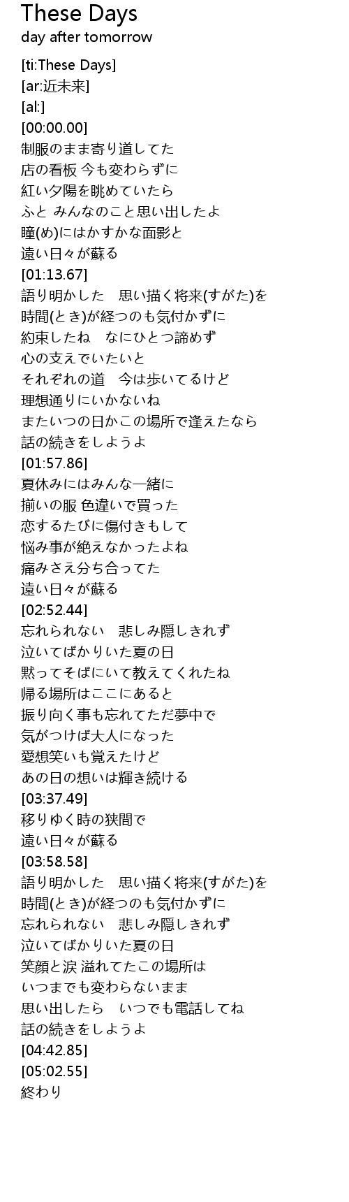 | [01:47.68] | またいつの日かこの場所で逢えたなら |