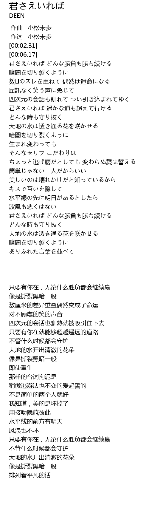 | [03:15.17] | 君さえいれば どんな勝負も勝ち続ける |