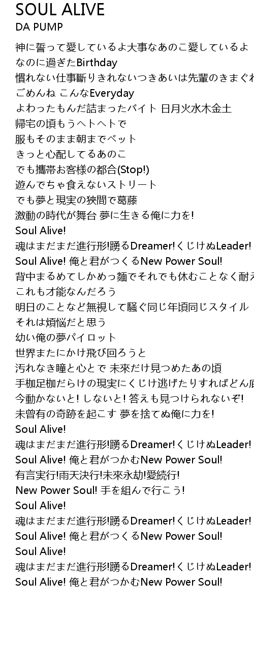| [03:35.248] | Soul Alive! an jun New Power Soul! |