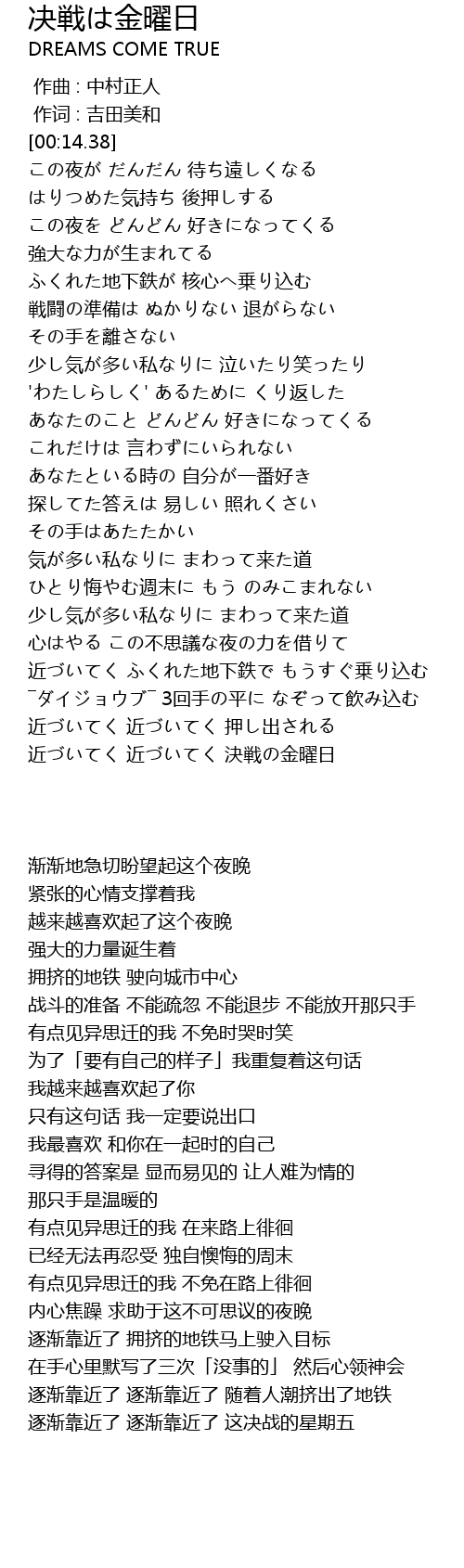 | [03:41.30] | 近づいてく 近づいてく 決戦の金曜日 |