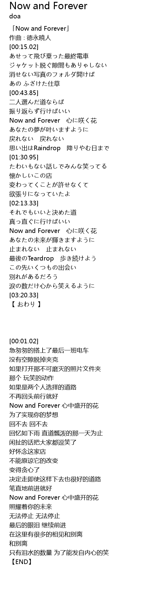 | [00:01.02] | 「Now and Forever」 |