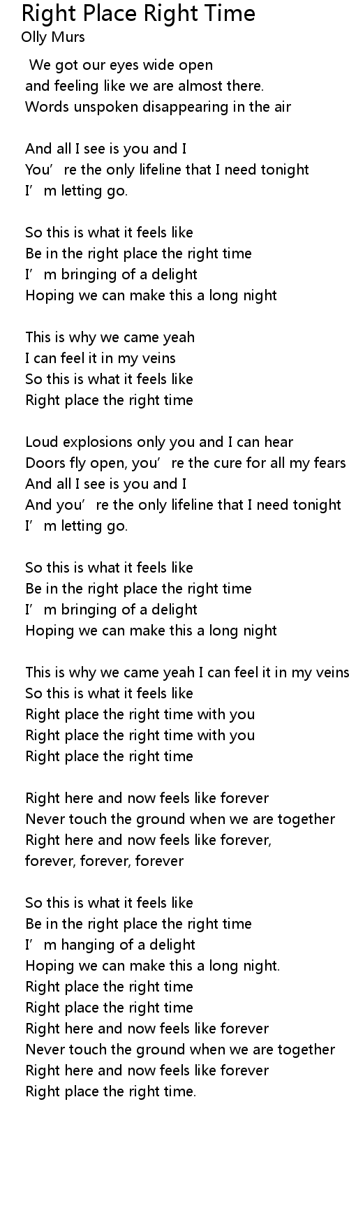 | Right place the right time with you | |