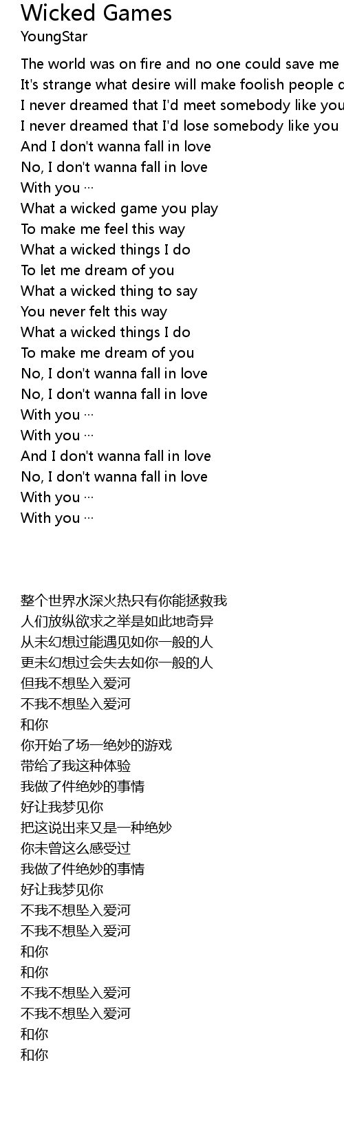 | [02:11.390] | No, I don' t wanna fall in love |