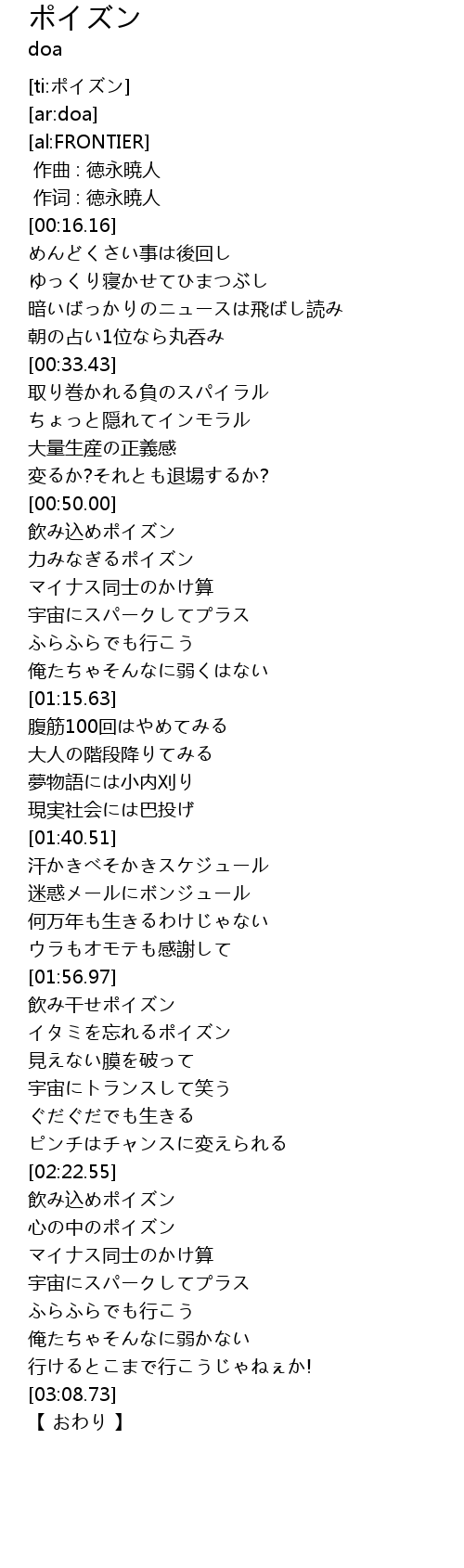 | [03:00.77] | 俺たちゃそんなに弱かない |