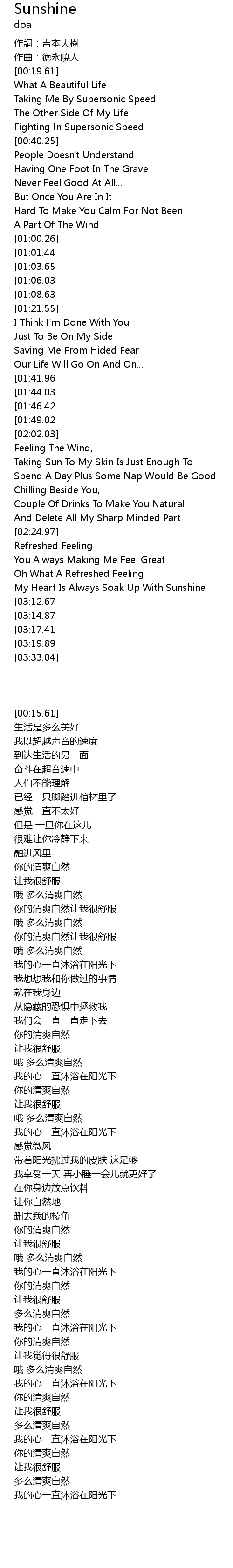 | [03:29.96][03:19.89][03:09.83][02:59.69] | My Heart Is Always Soak Up With Sunshine |