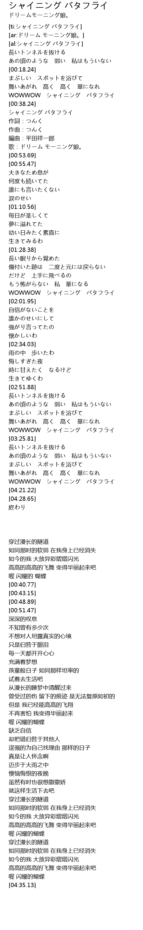 | [01:56.94] | WOWWOW シャイニング バタフライ |
