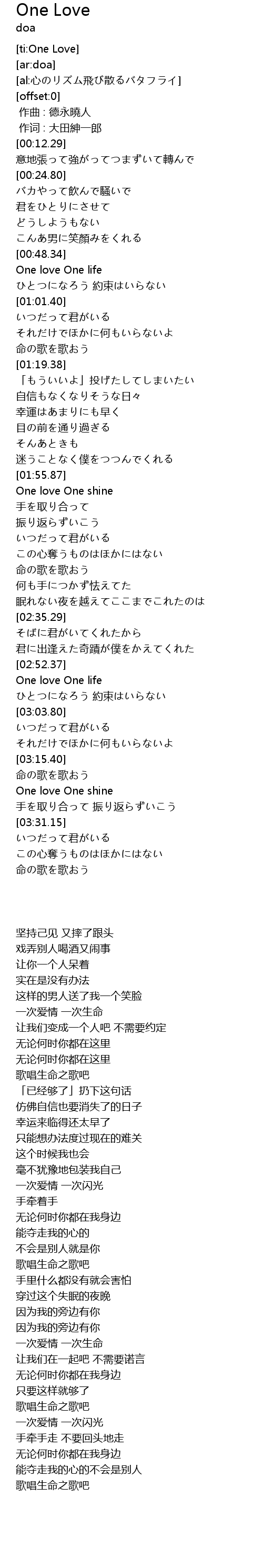 | [02:53.00] | One love One life |